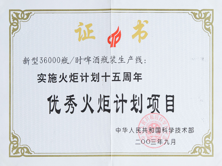 優(yōu)秀火炬計劃項目證書