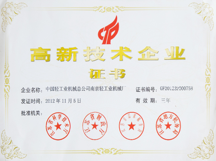 南京高新企業(yè)認(rèn)定證書