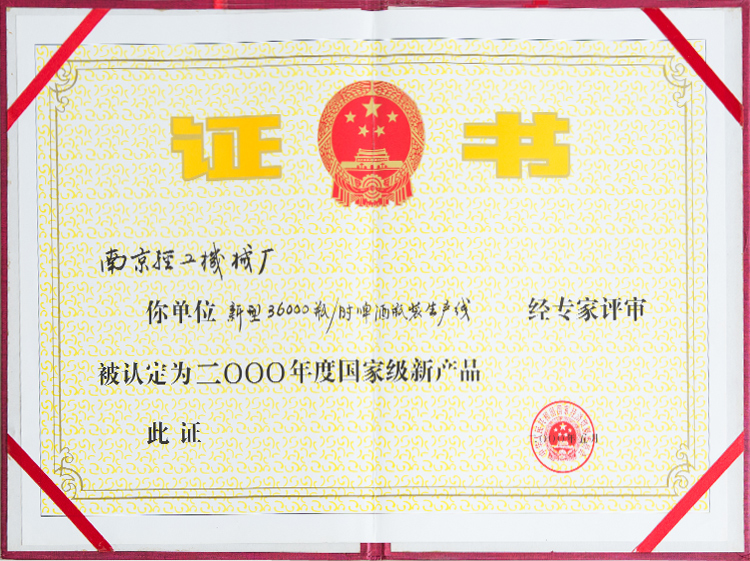 2000年國家級新產(chǎn)品企業(yè)證書