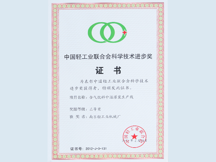中國輕工業(yè)聯(lián)合會科學(xué)技術(shù)進(jìn)步獎
