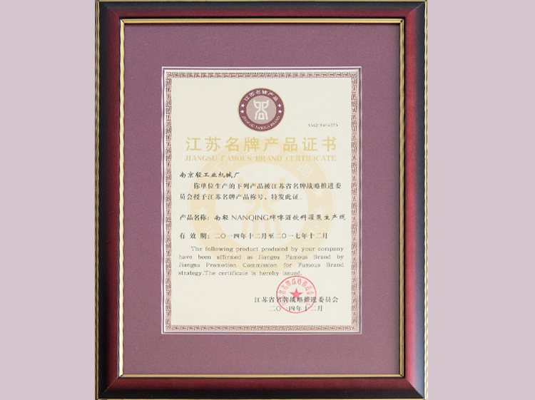 江蘇名牌產(chǎn)品證書