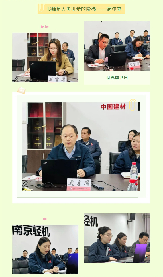 為進(jìn)一步發(fā)揮黨建引領(lǐng)作用,促進(jìn)黨建共建共融,激發(fā)職工閱讀熱情,提升職工綜合素養(yǎng),在第28個(gè)“世界讀書日”到來(lái)之際,南京輕機(jī)包裝機(jī)械有限公司與中國(guó)建材國(guó)際工程集團(tuán)有限公司江蘇分公司共同舉辦了“書香潤(rùn)企,筑夢(mèng)成長(zhǎng)”讀書交流活動(dòng)。