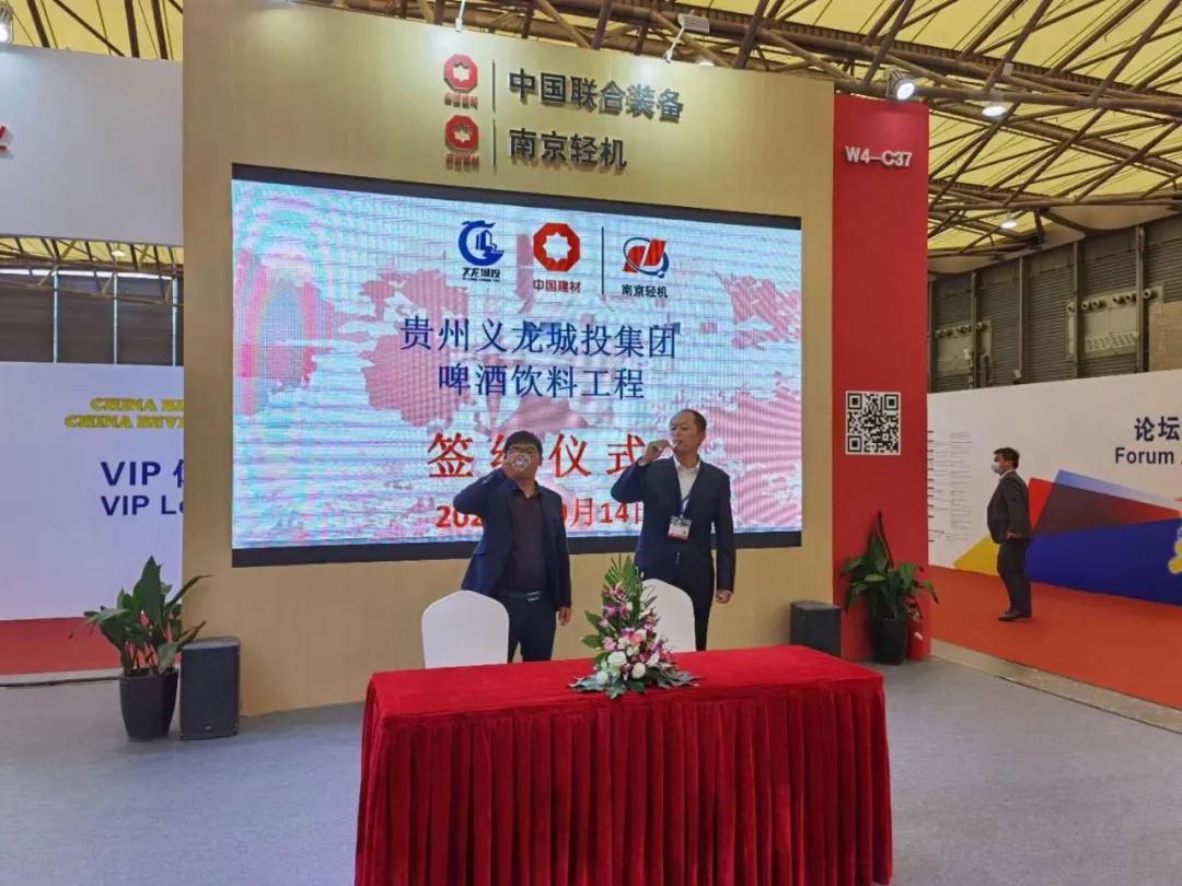 10月14日,CBB2020展會現場再傳捷報, 南京輕機與貴州義龍城投集團就啤酒飲料工程簽約。這是本次展會繼與安徽迎客松啤酒簽約后,簽下的又一條整線大單。今年10月新增訂單創(chuàng)歷史新高。