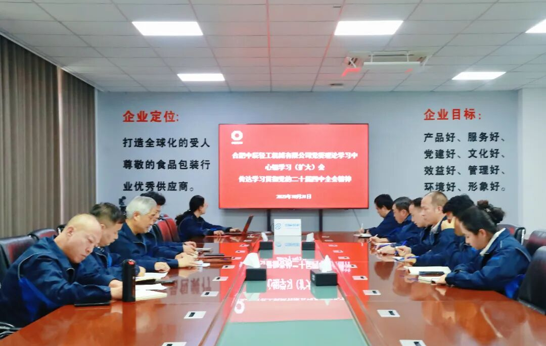 中辰輕機(jī)黨委召開黨委理論學(xué)習(xí)中心組(擴(kuò)大)學(xué)習(xí)會,專題傳達(dá)學(xué)習(xí)黨的二十屆四中全會精神,并進(jìn)行交流研討,研究部署學(xué)習(xí)宣貫工作。會議要求,把學(xué)習(xí)領(lǐng)會全會精神同深入學(xué)習(xí)貫徹黨的二十大和二十屆二中、三中全會精神,同打造全球化的受人尊敬的食品包裝行業(yè)優(yōu)秀供應(yīng)商的企業(yè)定位結(jié)合起來,以科技創(chuàng)新賦能產(chǎn)業(yè)升級,以高質(zhì)量發(fā)展引領(lǐng)轉(zhuǎn)型突破,真正做到學(xué)深悟透、融會貫通,以全會精神進(jìn)一步統(tǒng)一思想、凝聚共識,激發(fā)廣大干部職工干事創(chuàng)業(yè)的熱情,為實現(xiàn)“十四五”圓滿收官和“十五五”良好開局打牢堅實基礎(chǔ)。